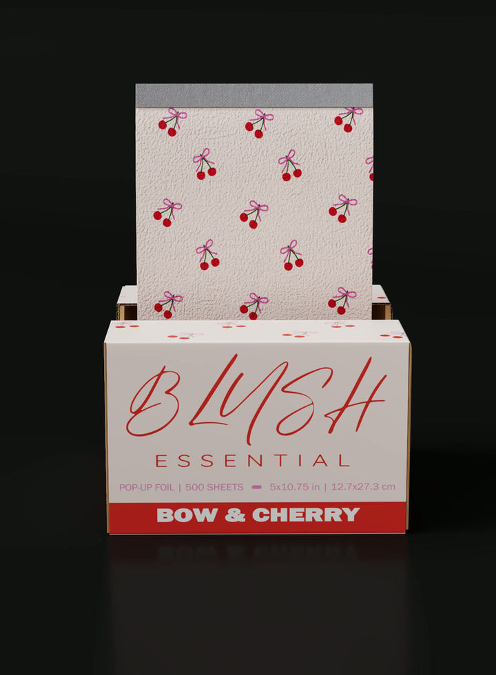 Bow & Cherry Pop-Up Foils designed with an eye-catching pattern and add a fun pop of color to your salon routine. Crafted with a unique orange peel texture, they provide an excellent grip, ensuring they stay securely in place. Made with thicker material, they offer durability and superior control, perfect for precision color applications. Experience ease and efficiency with these reliable, high-performance foils—an essential tool for any professional stylist.